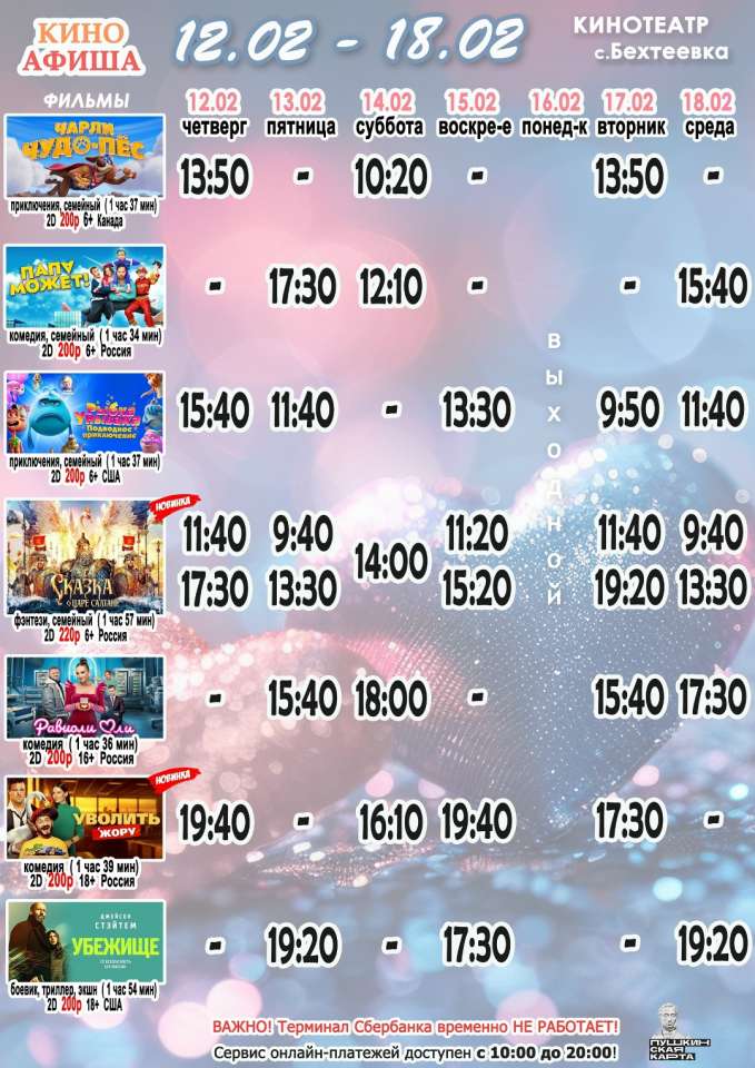 Важно! Терминал Сбербанка временно НЕ РАБОТАЕТ!Ждём вас в кино!